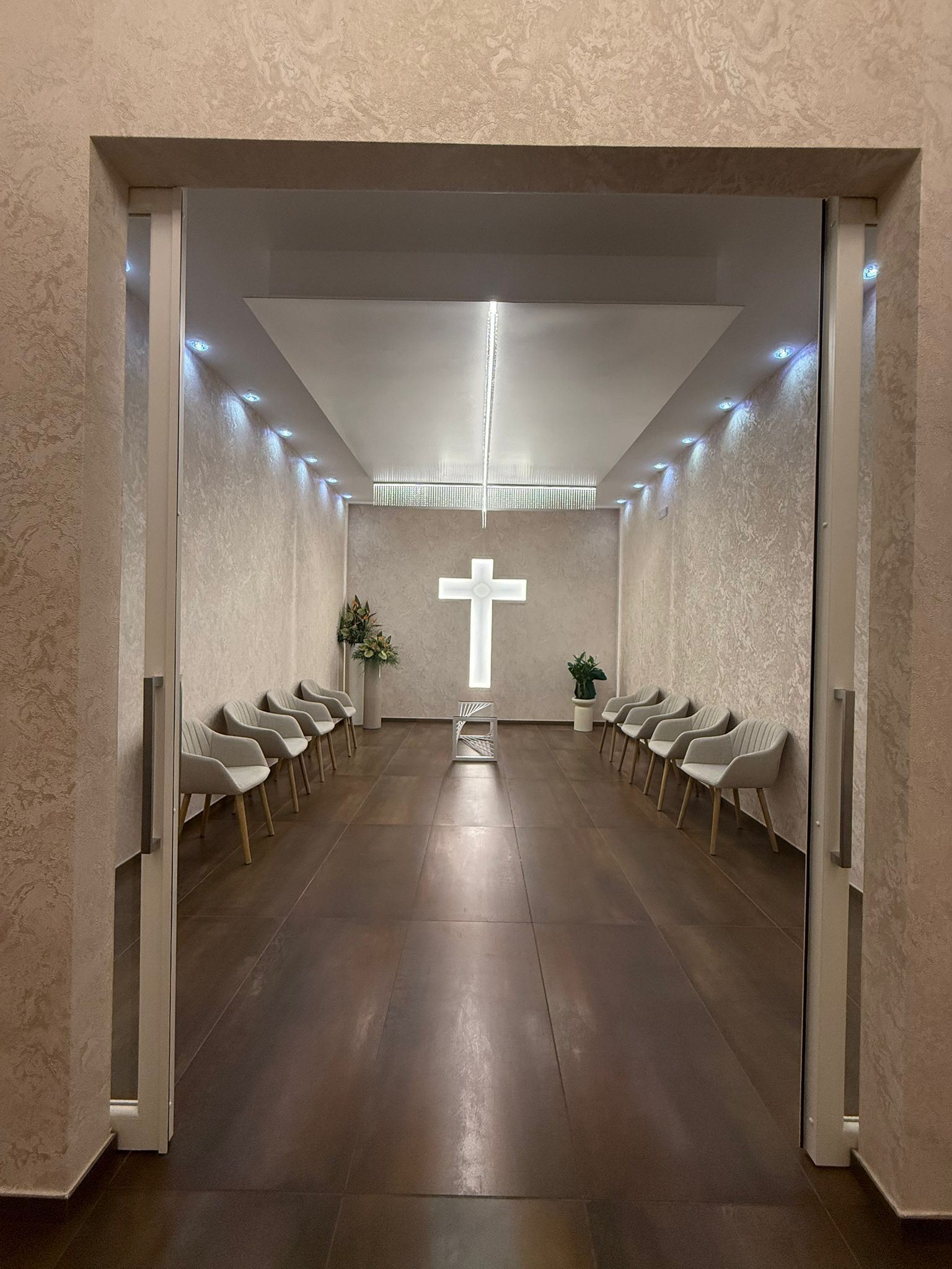 La struttura dispone di 10 sale dedicate, progettate per assicurare la massima riservatezza e offrire un ambiente intimo e raccolto per il commiato.